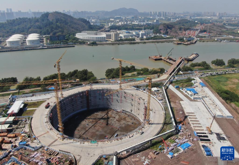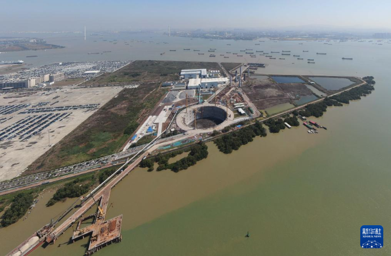這是獅子洋大橋西錨碇施工現(xiàn)場(3月12日攝,無人機(jī)照片)。