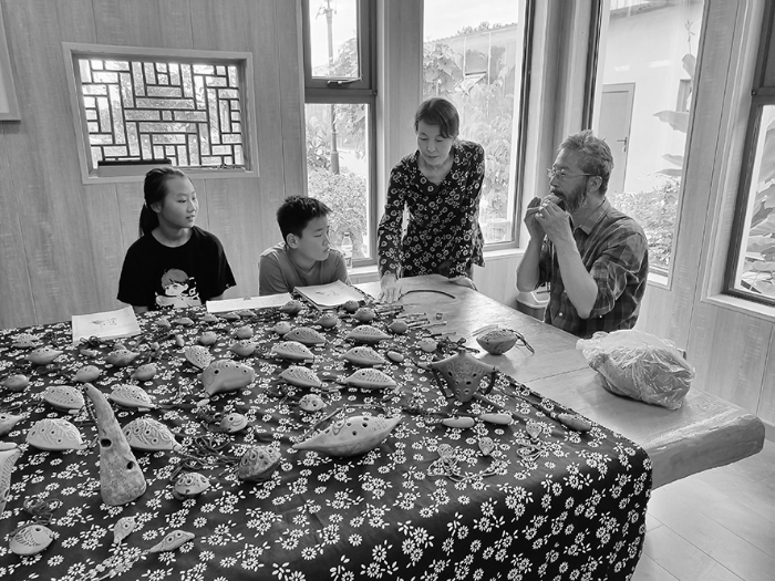 ▲ 學(xué)生跟著老師在學(xué)習(xí)制作國家級非遺項目“泥哇嗚” 受訪者供圖
