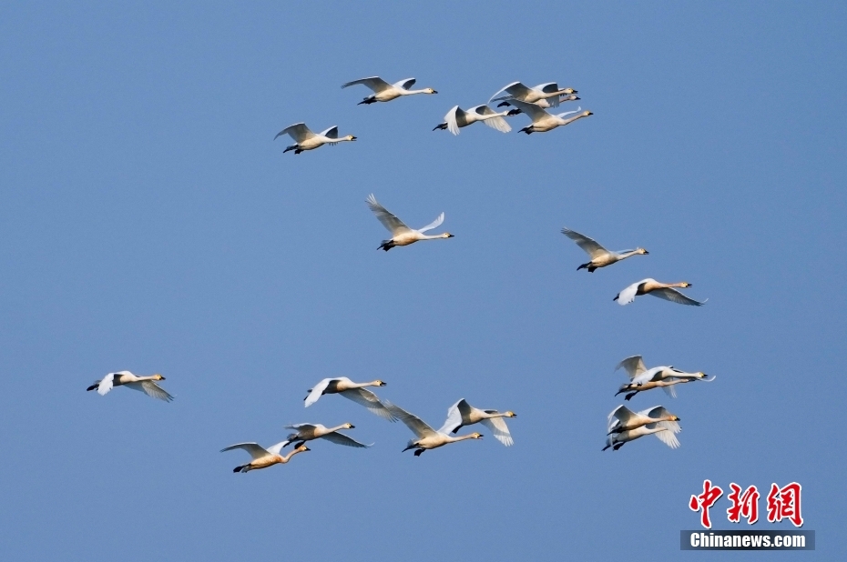3月14日下午,19只白天鵝在北京頤和園昆明湖上空翩翩起舞。冬去春來,在南方過冬的白天鵝陸續(xù)向北遷徙。3月以來,已有多批北歸的白天鵝在頤和園昆明湖“歇腳”,時而在空中飛舞,吸引眾多攝影愛好者和游客前來觀賞拍照。中新社記者 張煒 攝