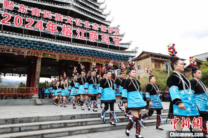 3月18日,2024年榕江侗族薩瑪節(jié)在貴州省黔東南苗族侗族自治州榕江縣三寶侗寨舉行?!八_瑪節(jié)”是侗族現存最古老而盛大的傳統(tǒng)節(jié)日,起源于母系氏族社會?!八_瑪”系侗語,侗語意為“大祖母”。2006年,榕江侗族薩瑪節(jié)被列入第一批中國非物質文化遺產名錄。