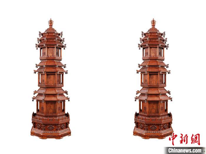 此次國家博物館收藏的5套家具中,2套仿清宮御制的七重檐寶塔分別為越南黃花梨和小葉紫檀材質(zhì),3套黃花梨微縮家具器型涵蓋案、柜、坐具、臥具等品種,融技術(shù)與藝術(shù)、實(shí)用與觀賞為一體。