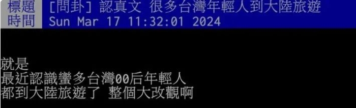 “民進(jìn)黨不開放民眾去大陸觀光,就是怕大家知道大陸的進(jìn)步?!苯鼇恚T如“臺灣年輕人因旅游而對大陸有改觀”的消息,頻頻見諸于島內(nèi)媒體與網(wǎng)絡(luò)社群。繼不久前一名臺灣網(wǎng)紅發(fā)布到大陸旅游的視頻引發(fā)熱議后,又有島內(nèi)“00后”年輕人的類似感慨掀起網(wǎng)絡(luò)討論潮。