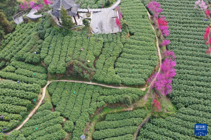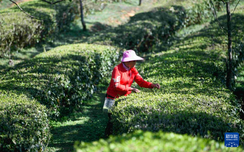 3月24日,村民在貴州省黔西南布依族苗族自治州興義市七舍鎮(zhèn)革上村的茶園里采摘春茶。
