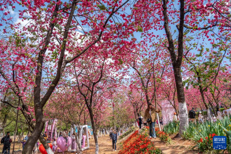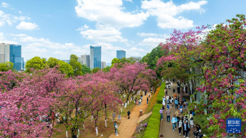 近日,云南昆明圓通山公園的櫻花進(jìn)入盛花期,吸引眾多市民和游客前來觀花賞景,樂享春日時(shí)光。
