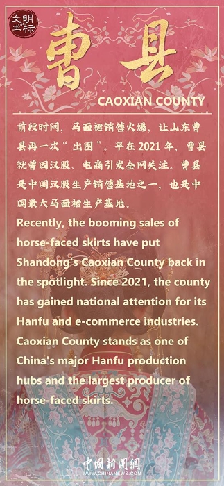 前段時間,馬面裙銷售火爆,讓山東曹縣再一次“出圈”?!安芸h賣了3億的馬面裙依然供不應求”相關話題登上熱搜,熱度居高不下。實際上,早在2021年,曹縣就曾因漢服、電商引發(fā)全網(wǎng)關注。曹縣是中國漢服生產(chǎn)銷售基地之一,也是中國最大馬面裙生產(chǎn)基地。