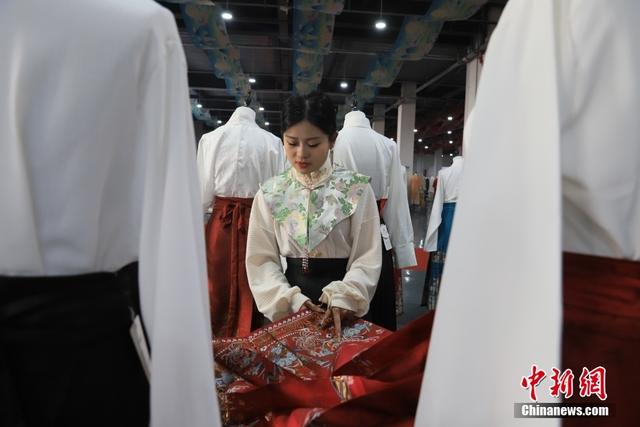 如今,隨著“新中式穿搭”走紅,漢服穿搭、馬面裙穿搭逐漸融入日常生活中。中新社記者 梁犇 攝