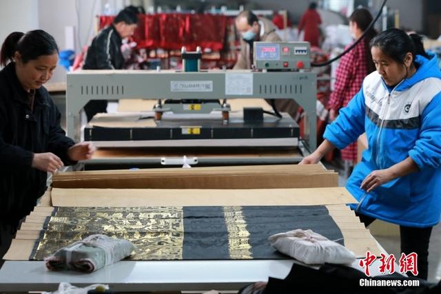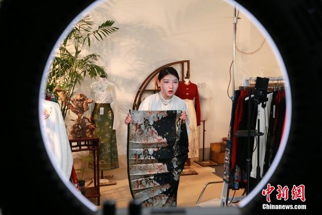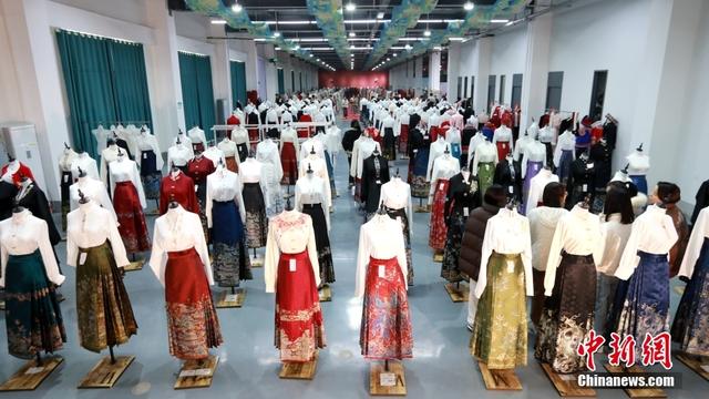 曹縣是中國漢服生產(chǎn)銷售基地之一,也是中國最大馬面裙生產(chǎn)基地。今年1月,曹縣“拜年服”銷售額達9.2億元,同比增長68.19%。中新社記者 梁犇 攝