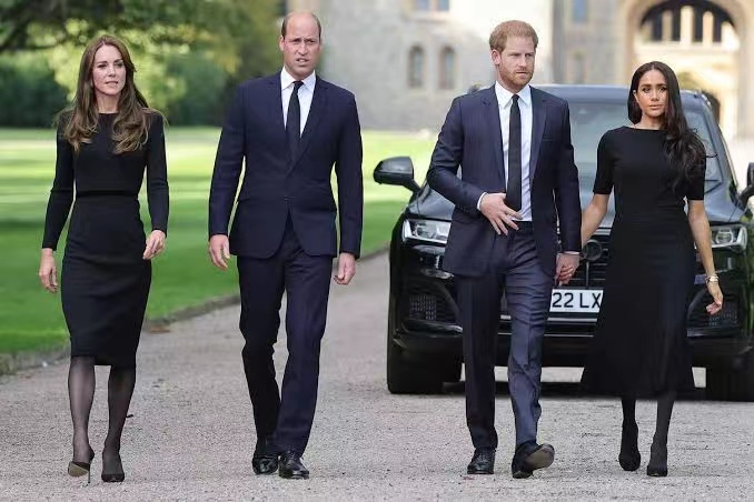 2022年9月伊麗莎白二世去世后,威廉夫婦與哈里夫婦并排行走。