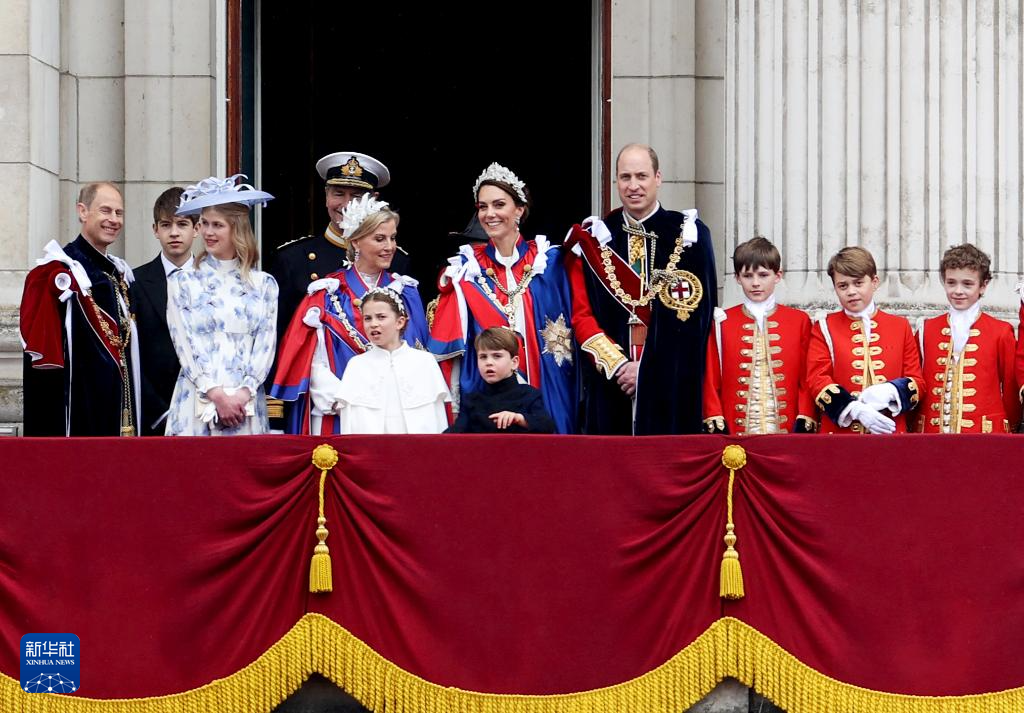 2023年5月6日,凱特王妃(中)在英國倫敦參加英國國王查爾斯三世的加冕儀式后,在白金漢宮陽臺(tái)上與民眾見面(資料照片)。新華社記者 李穎 攝