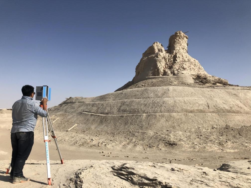 技術(shù)專家使用三維激光掃描技術(shù)為佛塔遺址建立數(shù)字化檔案(2020年10月20日攝)。新華社發(fā)(中鐵西北科學(xué)研究院有限公司供圖)