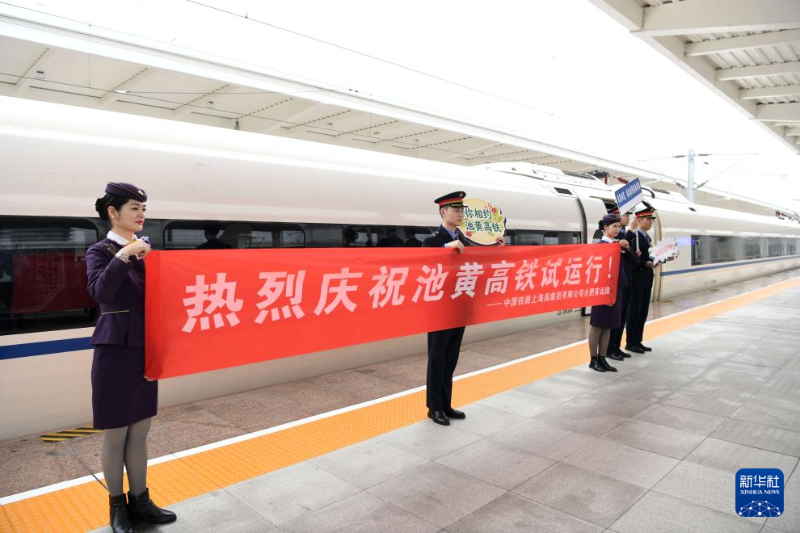 當(dāng)日,池黃高鐵開始試運(yùn)行。池黃高鐵起自安徽池州站,終至安徽黃山黟縣東站,正線全長(zhǎng)約125公里,設(shè)計(jì)時(shí)速350公里,是武(漢)杭(州)快速鐵路通道的重要組成部分。