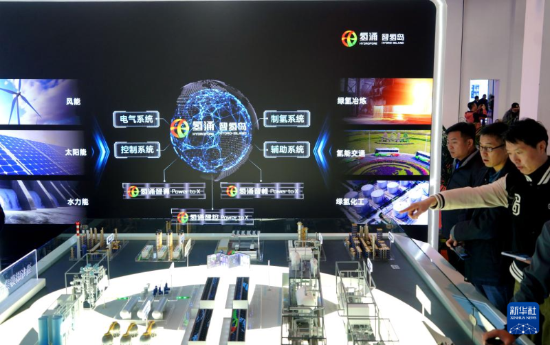 3月26日,參觀者在觀看氫能源的生產(chǎn)與應(yīng)用智能模擬沙盤。