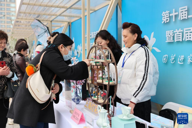 3月26日,市民在白玉蘭文創(chuàng)市集了解白玉蘭系列文創(chuàng)產(chǎn)品。