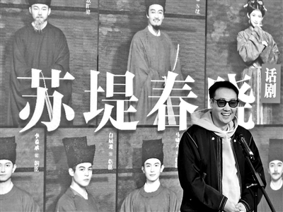 3月25日,這出原創(chuàng)大戲北京演出的新聞發(fā)布會上,演員們在回憶“和蘇大人一起工作的日子”時,也用了“我其實是甲方”;“水光瀲滟晴方好”是蘇大人為西湖寫就的“最美廣告語”;蘇大人先后擔(dān)任杭州副市長、市長;我與蘇大人共事過兩次,第一次蘇大人請我專項撥款;我和蘇大人一起上朝,是他的鐵粉;我在劇中的角色是北宋小報自媒體。這樣的現(xiàn)代詞匯,足見這出北宋基調(diào)大戲并不晦澀難懂。