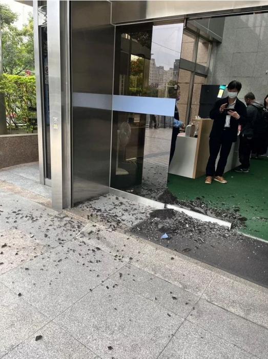 圖為28日上午,位于臺(tái)北市延平南路的“數(shù)位發(fā)展部”大樓遭槍擊,玻璃大門碎裂。圖自臺(tái)灣《聯(lián)合報(bào)》