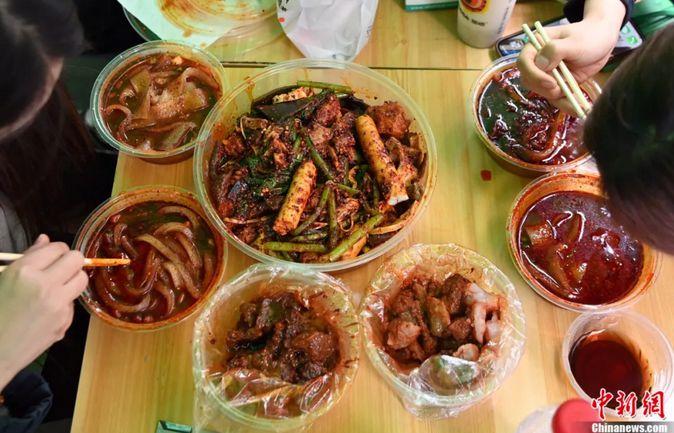 圖片3月14日,甘肅天水,游客品嘗麻辣燙。近日,甘肅天水麻辣燙在網(wǎng)絡(luò)平臺火爆,吸引全國各地眾多游客前來品嘗。九美旦增 攝