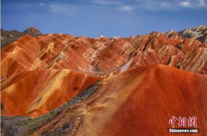 張掖七彩丹霞景區(qū)是中國西北干旱地區(qū)發(fā)育最典型的丹霞地貌的集中代表,是中國唯一的丹霞地貌、彩色丘陵和土林地貌的復(fù)合區(qū)域。中新社記者 李雪峰 攝