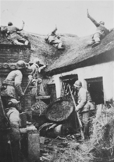 1948年3月,周村戰(zhàn)斗中,我軍在房頂上與敵人激戰(zhàn)。 《解放軍畫報(bào)》資料室供圖