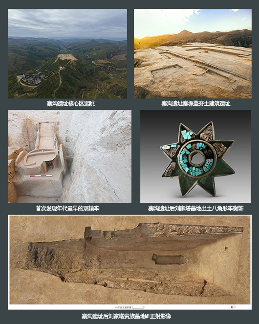 陜西清澗寨溝遺址位于陜西省榆林市清澗縣解家溝鎮(zhèn)寨溝村,地處陜北黃土高原腹心。寨溝遺址總面積約300萬平方米,考古隊(duì)在11座山峁上發(fā)現(xiàn)了功能多樣、密集分布的大量遺跡,包括大型夯土建筑基址、大型墓葬、小型墓地、鑄銅遺址、一般居址點(diǎn)等。出土文物的年代及碳14測(cè)年數(shù)據(jù)顯示,這些墓葬主要處于商代晚期。在此次發(fā)掘中,考古隊(duì)還在遺址外圍發(fā)現(xiàn)了11座甲字形商代大墓,這是首次發(fā)現(xiàn)殷商文化圈以外數(shù)量最多的甲字形大墓。