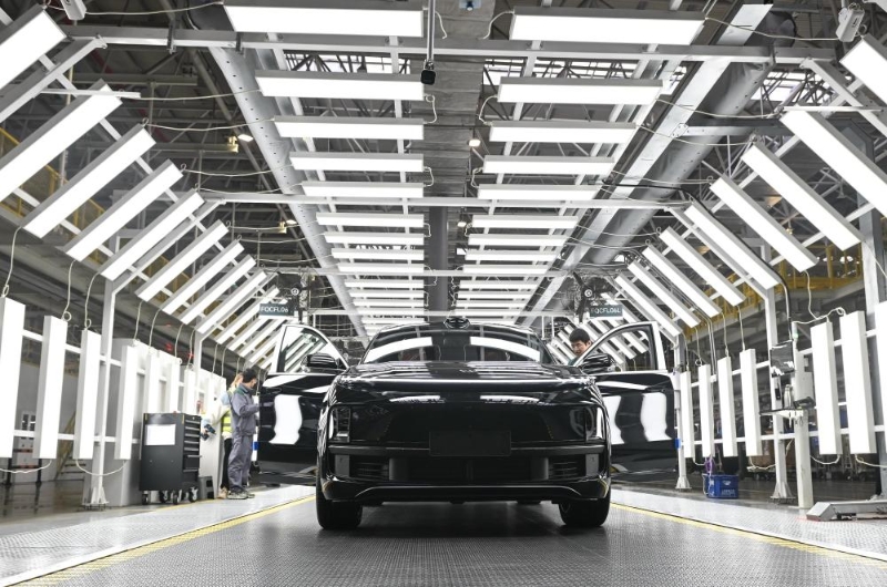 在理想汽車江蘇常州基地,成品汽車準(zhǔn)備下線(2024年1月10日攝)。新華社記者 季春鵬 攝
