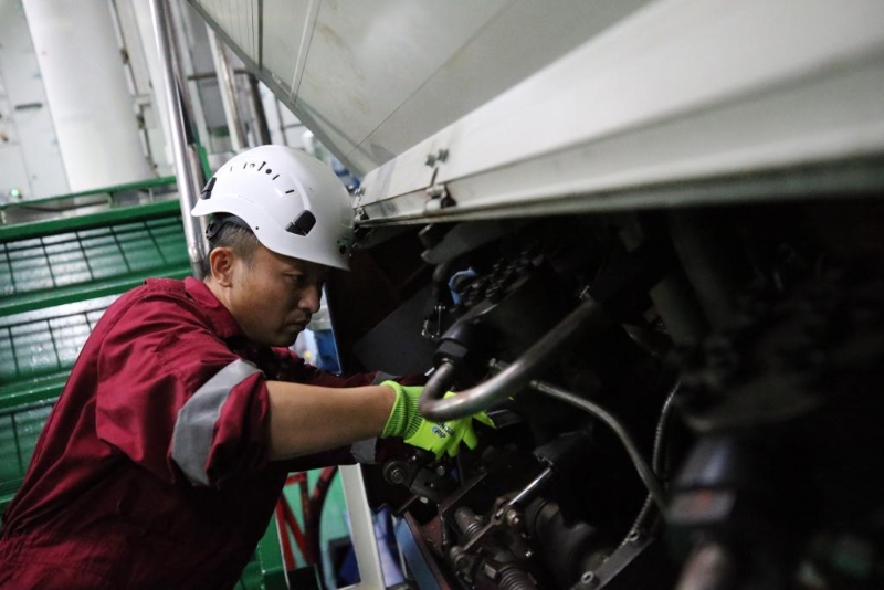 2023年11月26日,“雪龍2”號(hào)機(jī)工長(zhǎng)湯建國(guó)在檢查設(shè)備。新華社記者周圓攝