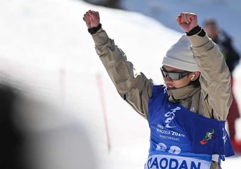 2月24日,第十四屆全國冬季運(yùn)動(dòng)會(huì)單板滑雪公開組男子坡面障礙技巧決賽,蘇翊鳴獲得冠軍。新華社記者 貝赫 攝