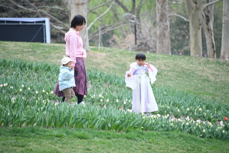 4月4日,游客在北京世界花卉大觀園游覽。新華社記者 任超 攝