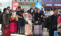 4月6日,旅客在河北省石家莊火車站出行。