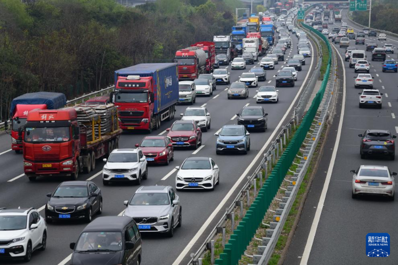 4月6日,在滬蓉高速公路江蘇無錫段,去往上海方向的車輛緩慢通行。