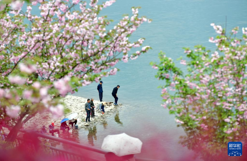4月6日,游客在重慶市酉陽土家族苗族自治縣桃花源景區(qū)內(nèi)游玩。