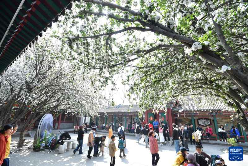 4月6日,游客在河北省石家莊市正定縣隆興寺觀光游玩。