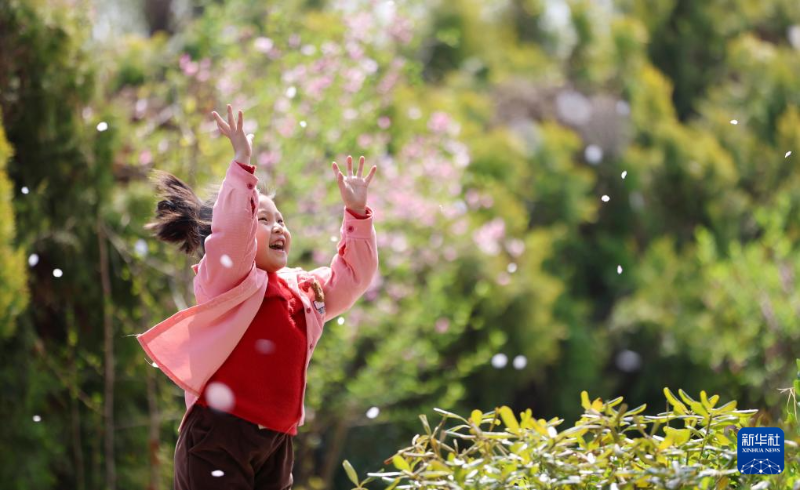 4月6日,一名小女孩在山東省臨沂市郯城縣白馬河濕地公園玩耍。