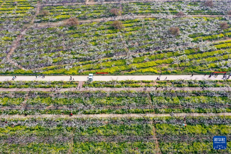 4月6日,游客在河北省晉州市周家莊農(nóng)業(yè)特色觀光園梨花觀賞區(qū)游玩(無人機(jī)照片)。