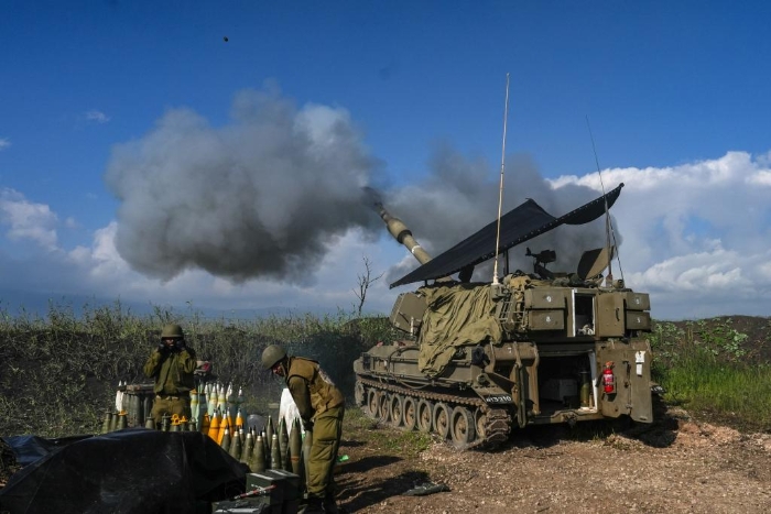 1月4日,在以色列北部邊境,以軍的一門自行榴彈炮向黎巴嫩南部開(kāi)火。新華社發(fā)(阿亞爾·馬戈林?jǐn)z/基尼圖片社)