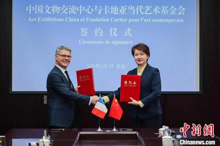 中新網(wǎng)北京4月7日電 (記者 應(yīng)妮)中法建交60周年之際,中國(guó)文物交流中心與卡地亞當(dāng)代藝術(shù)基金會(huì)日前在京簽署合作框架協(xié)議,雙方就開(kāi)展學(xué)術(shù)交流、展覽合作、信息交流、宣傳等相關(guān)領(lǐng)域的合作達(dá)成共識(shí)。