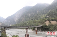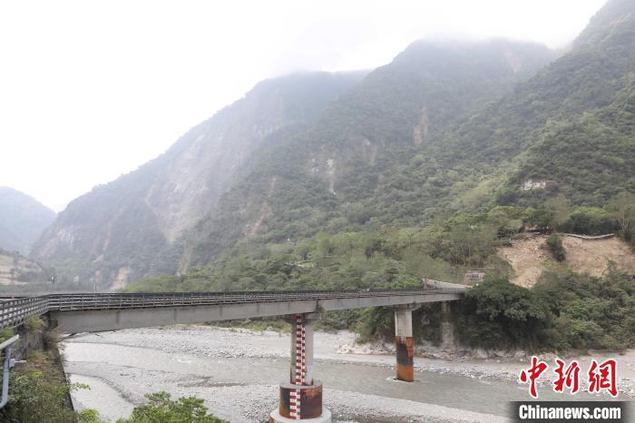 圖為4月4日,臺(tái)灣花蓮地震發(fā)生的第二天,位于太魯閣公園的中橫公路入口,立霧溪出??趦蓚?cè)山體有明顯滑坡痕跡。中新社記者 楊程晨 攝