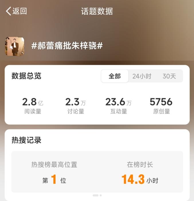 這場關(guān)于夢想和面包的討論,從節(jié)目中蔓延到了網(wǎng)絡(luò)上——郝蕾被罵上了熱搜第一。#郝蕾痛批朱梓驍#的詞條里,網(wǎng)友痛批郝蕾。2.8億的閱讀量,大半都是對郝蕾“何不食肉糜”的批判。