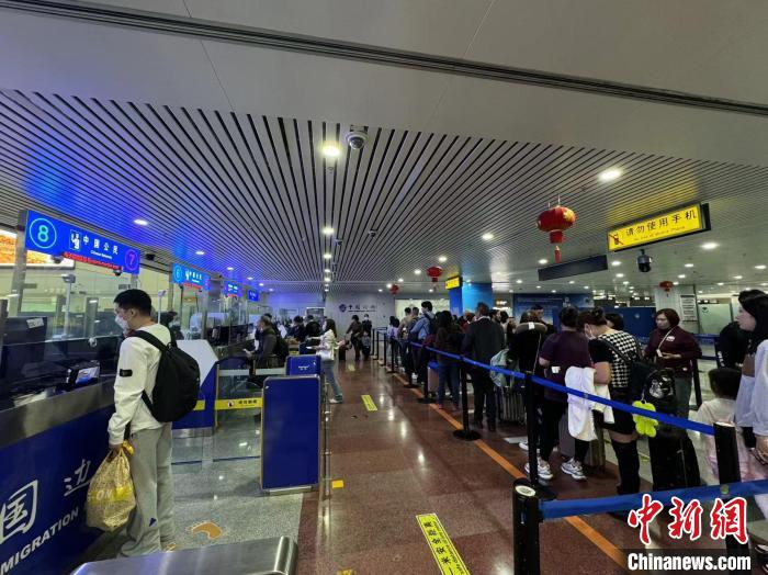 4月9日,旅客在福州長(zhǎng)樂(lè)國(guó)際機(jī)場(chǎng)出境旅客查驗(yàn)大廳辦理入境通關(guān)手續(xù)?!£愞染?攝