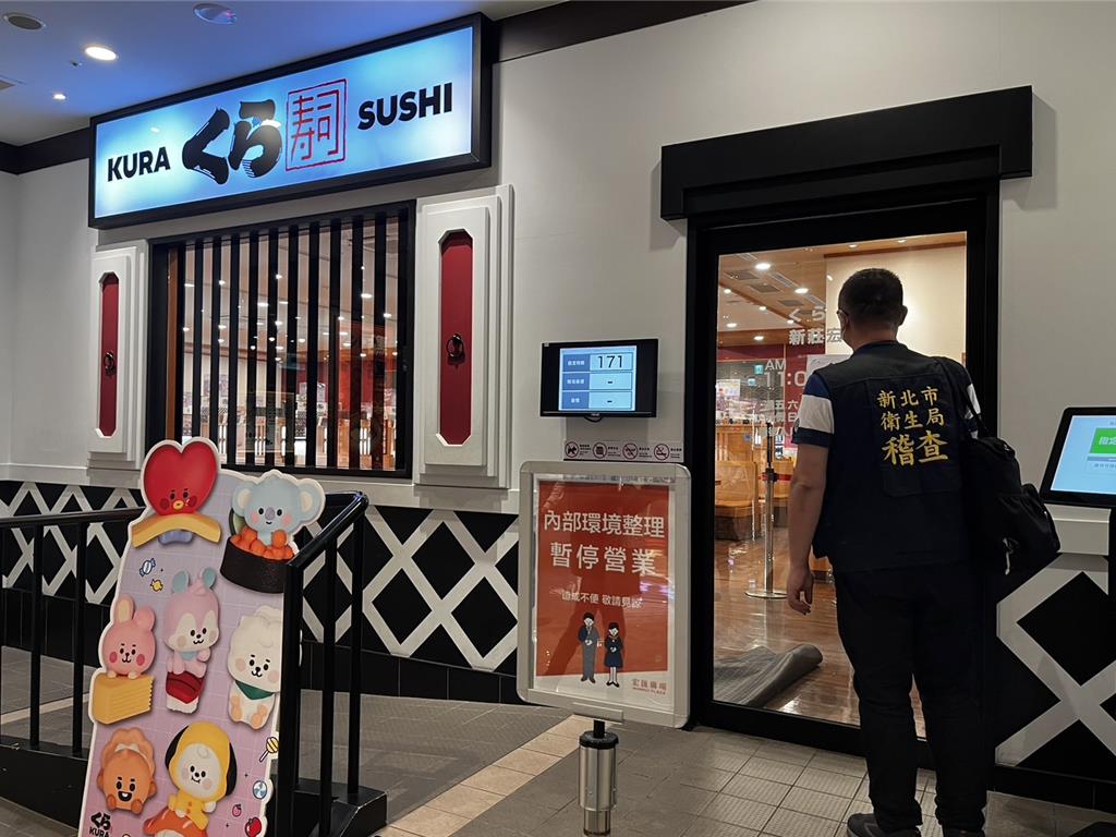 食安問題連環(huán)爆,新北市衛(wèi)生局接獲藏壽司新莊宏匯店食品中毒通報案,衛(wèi)生局命藏壽司新莊宏匯店即日起停業(yè)。(新北市衛(wèi)生局提供/臺灣“中時新聞網(wǎng)”)
