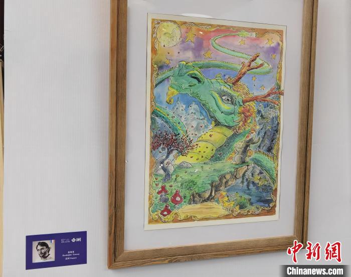 來自法國(guó)的藝術(shù)家藍(lán)浚龍?jiān)谥袊?guó)生活已有13年。當(dāng)日其展出的三幅作品中,有一幅獨(dú)具特色的中國(guó)龍繪畫。他介紹,這是自己特意為中國(guó)新年所作之畫。每年他都會(huì)為中國(guó)新年做一件藝術(shù)品,并將其送給親朋好友,以表祝福。