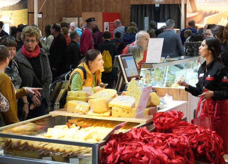 2023年1月20日,人們在德國柏林國際綠色周上選購奶酪。新華社發(fā)(斯特凡·蔡茨攝)