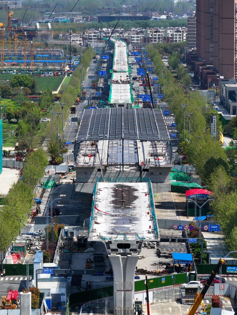 南京至馬鞍山市域(郊)鐵路全長約54.23公里,共設(shè)站16座。項目建成后,兩市中心城區(qū)僅需30分鐘即可互通互達。這是2024年4月9日在南京拍攝的該鐵路工程項目建設(shè)現(xiàn)場(無人機照片)。