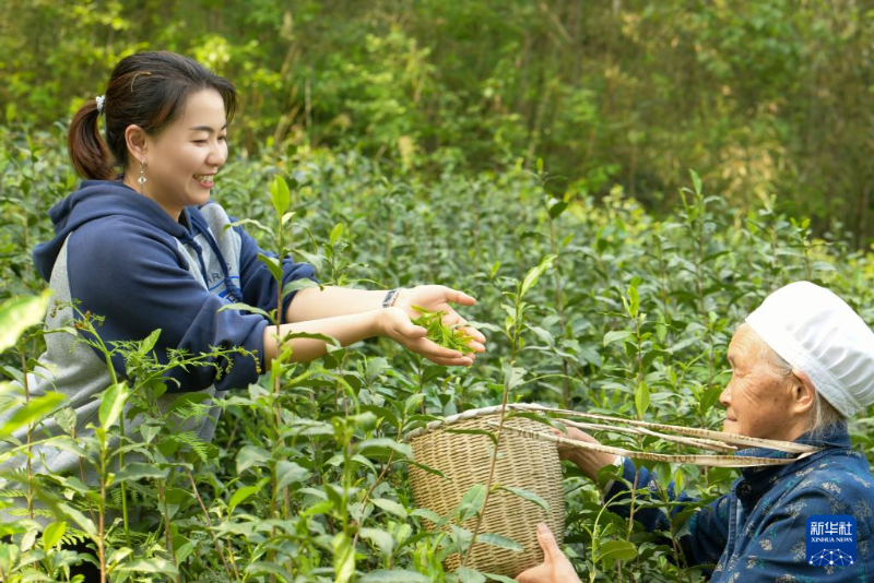 4月14日,村民在貴州省遵義市鳳岡縣一茶園內(nèi)采摘春茶。