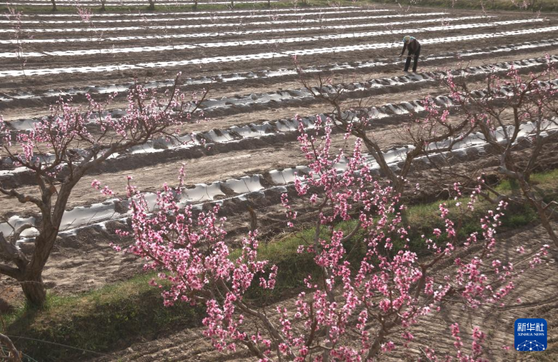 4月14日,甘肅省敦煌市七里鎮(zhèn)杜家墩村農(nóng)民在田間勞作。