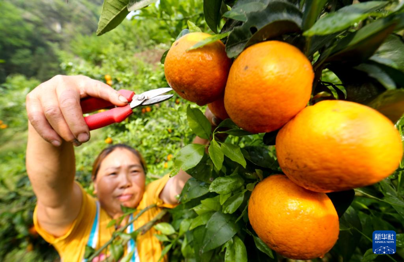4月14日,村民在貴州省開(kāi)陽(yáng)縣云開(kāi)街道石頭村采摘柑橘。
