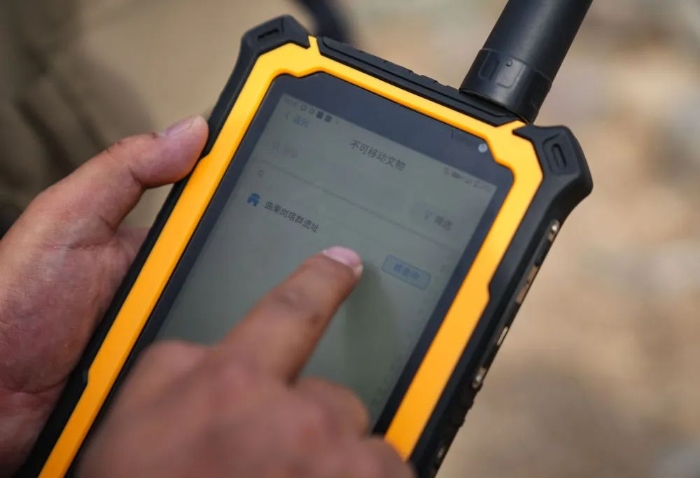 4月11日,普查人員手持移動(dòng)端數(shù)據(jù)采集設(shè)備在曲果崗塔群遺址現(xiàn)場(chǎng)開(kāi)展數(shù)據(jù)采集。新華社記者 晉美多吉 攝