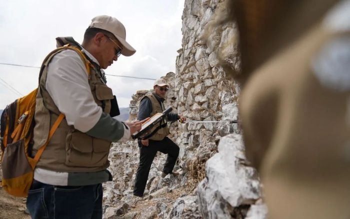 4月11日,普查人員在曲果崗塔群遺址現(xiàn)場(chǎng)開(kāi)展數(shù)據(jù)采集。新華社記者 晉美多吉 攝