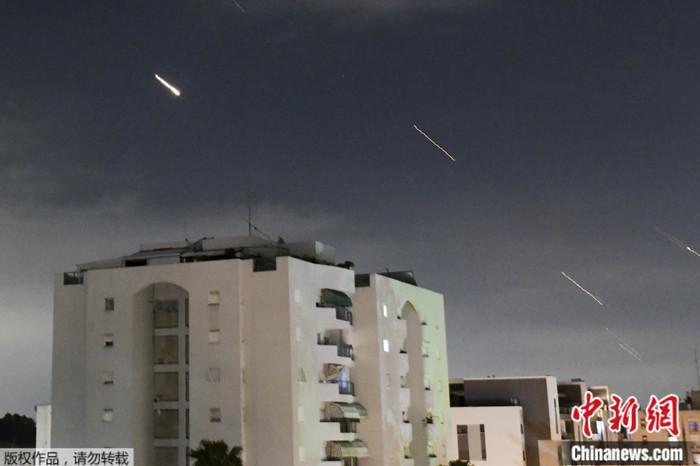 當(dāng)?shù)貢r(shí)間14日,以色列鐵穹防空系統(tǒng)攔截從伊朗發(fā)射的導(dǎo)彈。