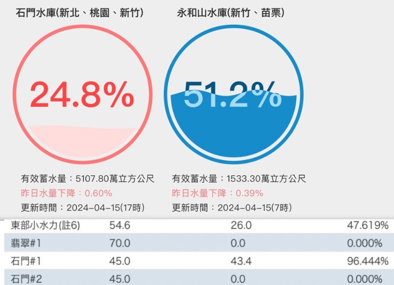 即使石門水庫儲水量只剩24%,應(yīng)該好好保留,但是為了支持昨晚的電力供應(yīng),1號機“水力全開”,發(fā)電功率達到96%,真不知這一放水,會增加多少桃園地區(qū)的缺水隱患?