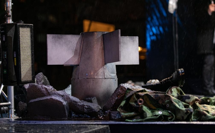 3月24日,在塞爾維亞南部城市普羅庫普列,一枚導(dǎo)彈模型擺放在北約轟炸南聯(lián)盟遇難者悼念儀式現(xiàn)場。塞爾維亞南部城市普羅庫普列24日晚舉行活動,悼念25年前北約轟炸南斯拉夫聯(lián)盟共和國的遇難者。新華社發(fā)(王韡攝)